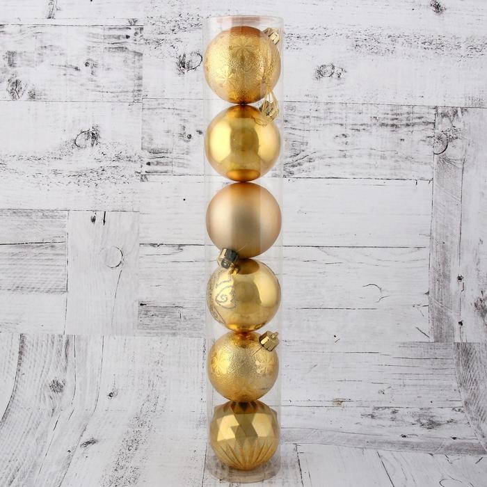 Ёлочные игрушки, шары новогодние , пластик, набор d-6 см, 6 шт "Праздничные огоньки - снежинки" золото