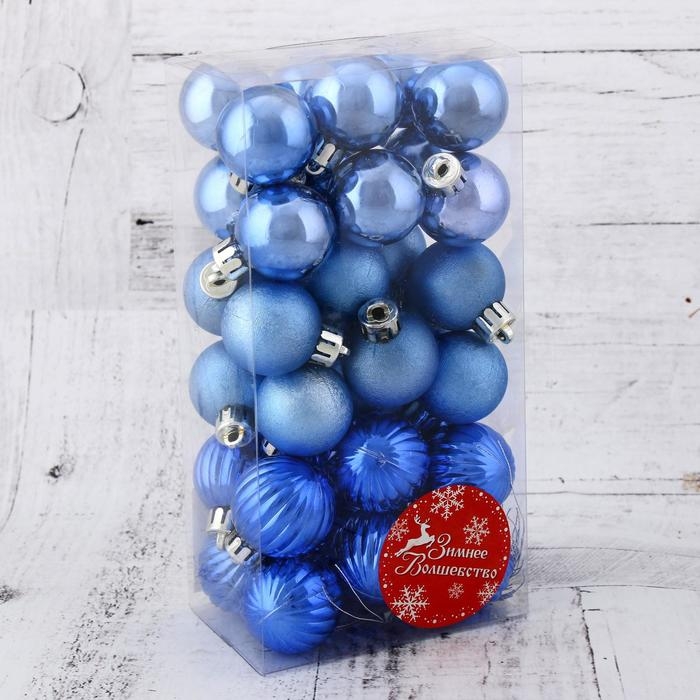 Ёлочные игрушки, шары новогодние , пластик, набор d-3 см, 36 шт "Лагуна ассорти" синий