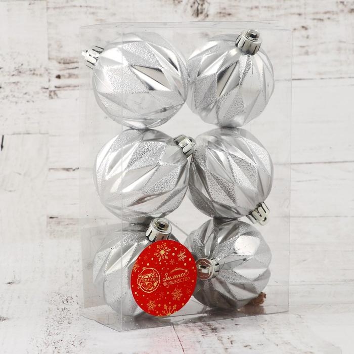 Ёлочные игрушки, шары новогодние , пластик, набор d-6 см, 6 шт "Иллюзия" серебро