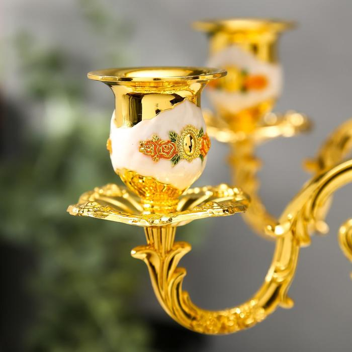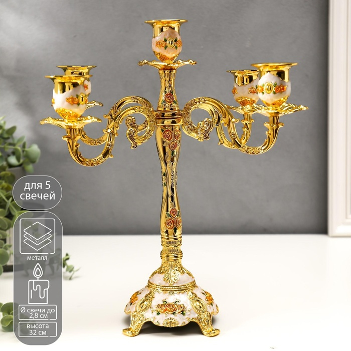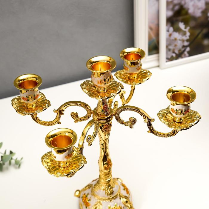 Подсвечник металл на 5 свечей "Розы. Белая эмаль" цвет золото 32х30х30 см