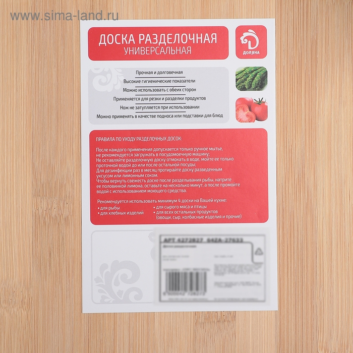 - Безопасность: доска не выделяет вредных веществ и безопасна для контакта с пищевыми продуктами.