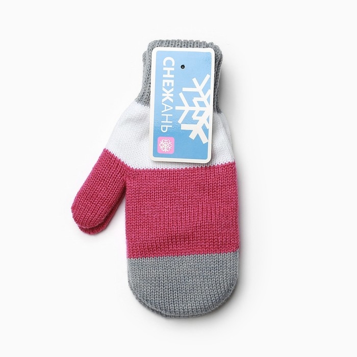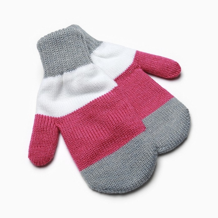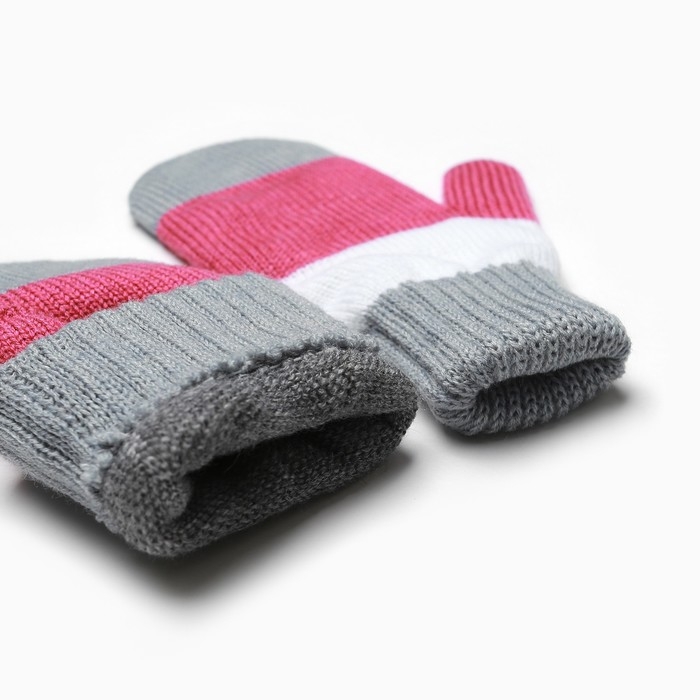 Варежки для девочки, серый/белый/малиновый, размер 16