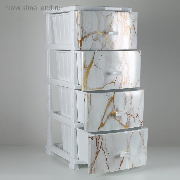 Комод 4-х секционный «Декор. Белый мрамор», белый