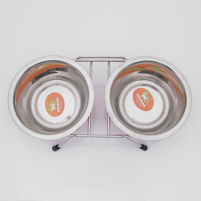 Набор из двух мисок изготовленных из качественной нержавеющей стали, которые предназначены для кормления домашних животных.