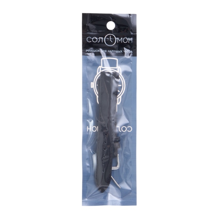 Ремешок для часов "Соломон", 18 мм, натуральная кожа, l-20 см, черный