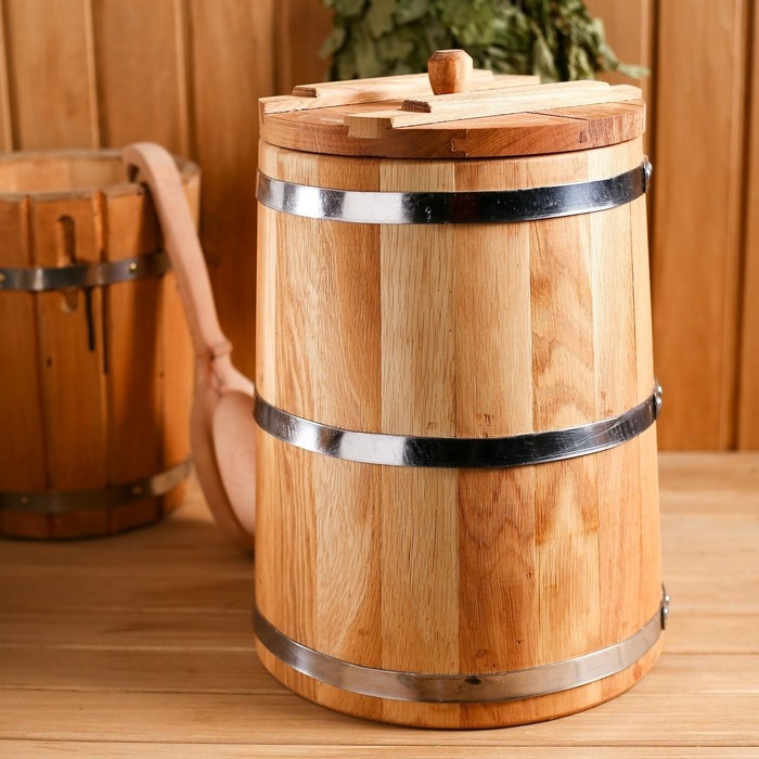 Кадка-бочка для засолки дубовая, 15 л, металлический обруч, с крышкой, с гнетом