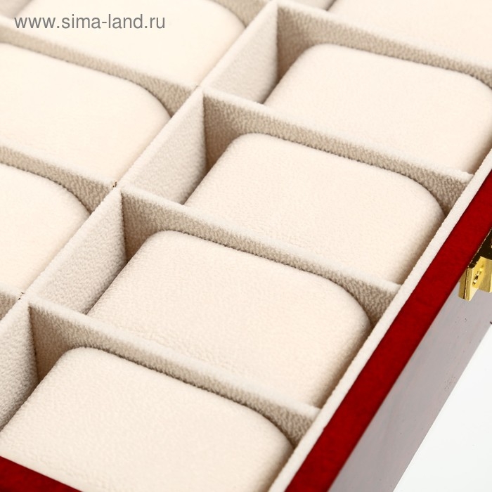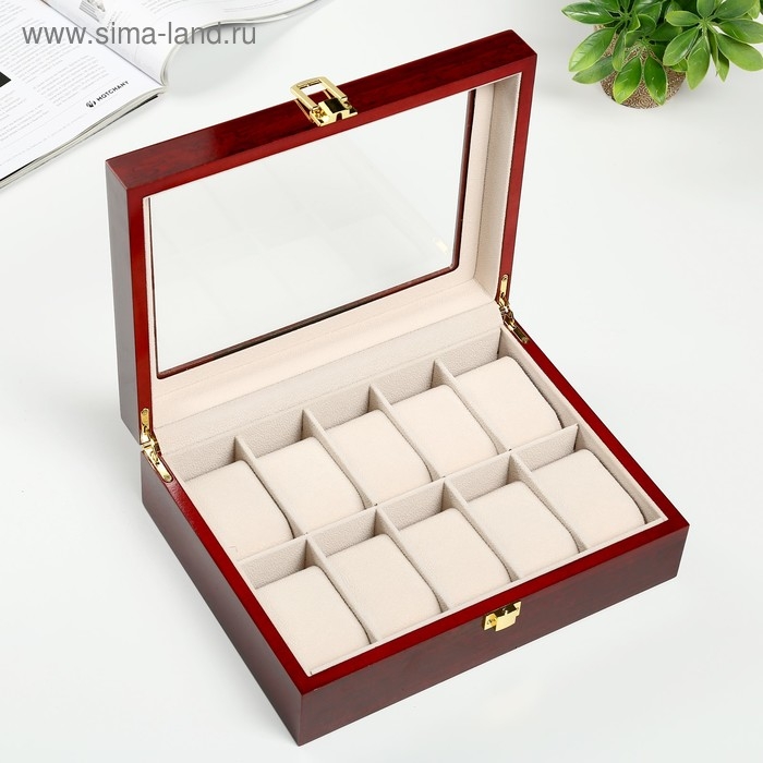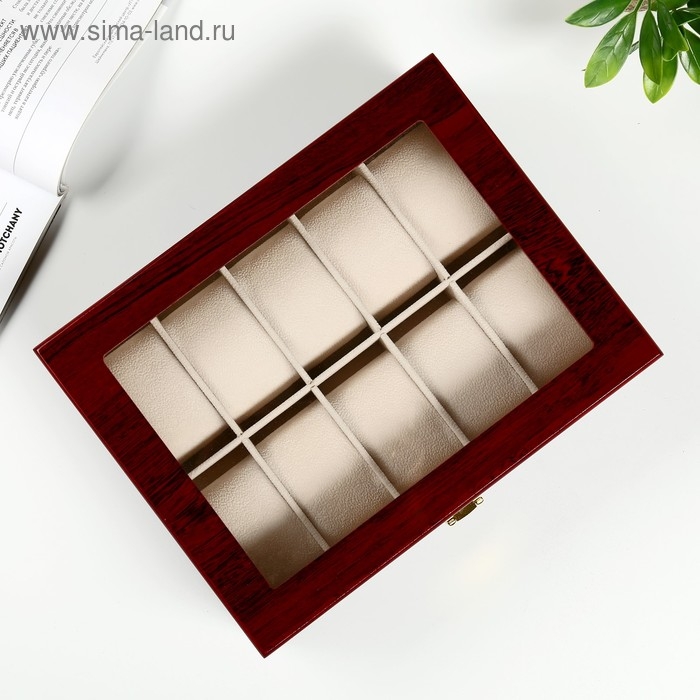 Шкатулка дерево под часы 10 отделений "Красно-коричневая" лак 8х26х20 см