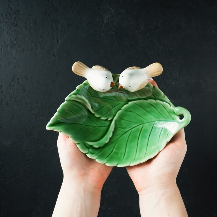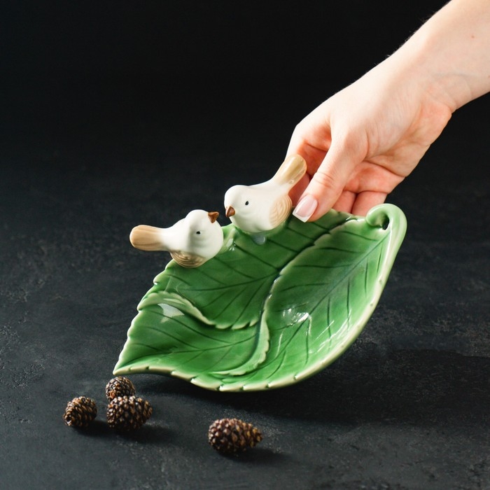 Блюдо керамическое «Птички на листочке», 19×13×4 см, цвет зелёный