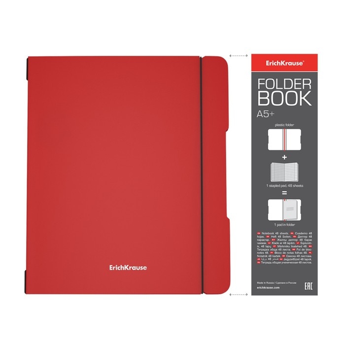 Тетрадь 48 листов в клетку, ErichKrause FolderBook, съёмная пластиковая обложка, на резинке, блок офсет 100% белизна, красная