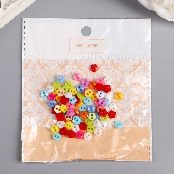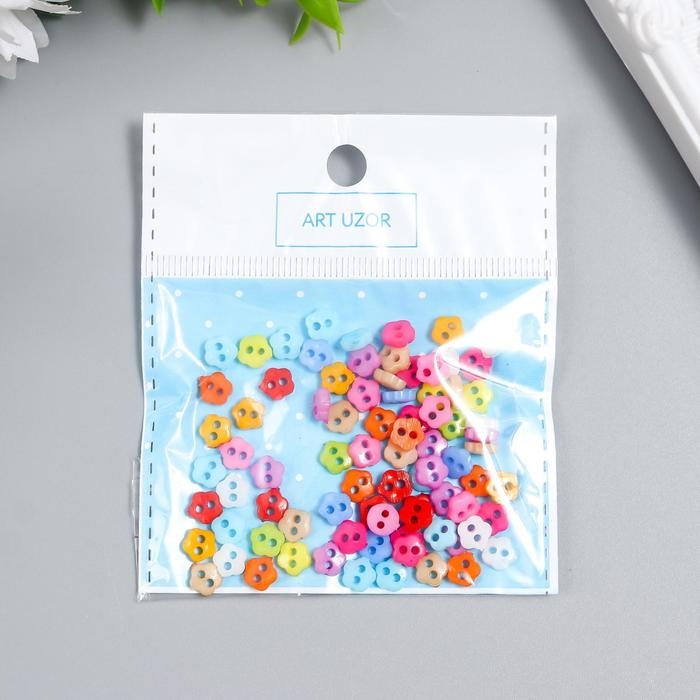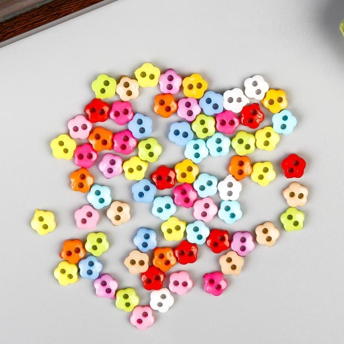 Пуговицы пластик для творчества 2 прокола "Цветные цветочки" микро набор 80 шт 0,6х0,6 см