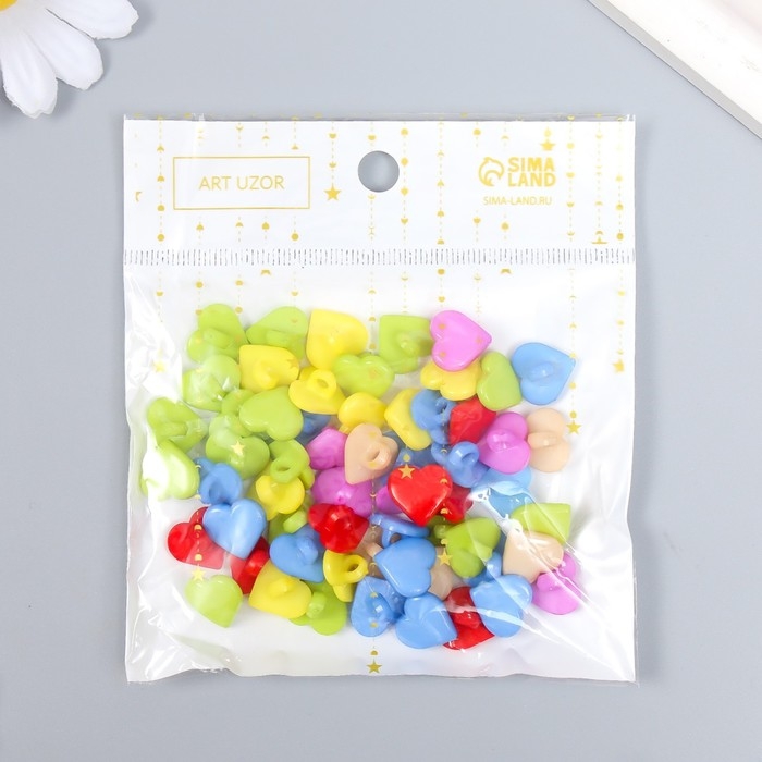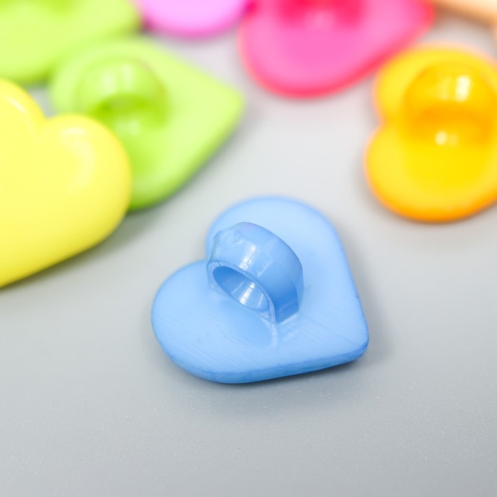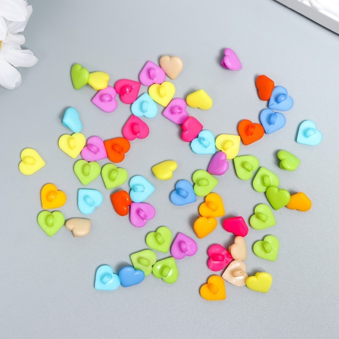Пуговицы пластик для творчества на ножке "Цветные сердечки" набор 60 шт 1,2х1,2 см
