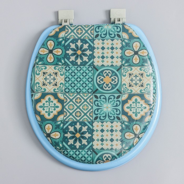 Сиденье для унитаза с крышкой,Росспласт, 43×37 см, мягкое, голубое, МИКС