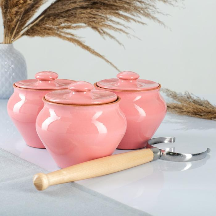 Набор "Вятская керамика Трио" 0,6 л х 3 шт + ухват, розовый