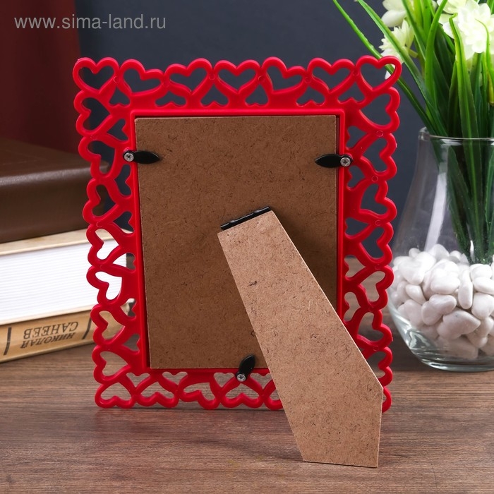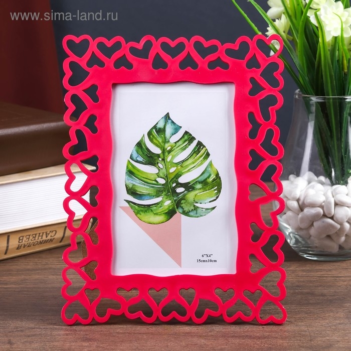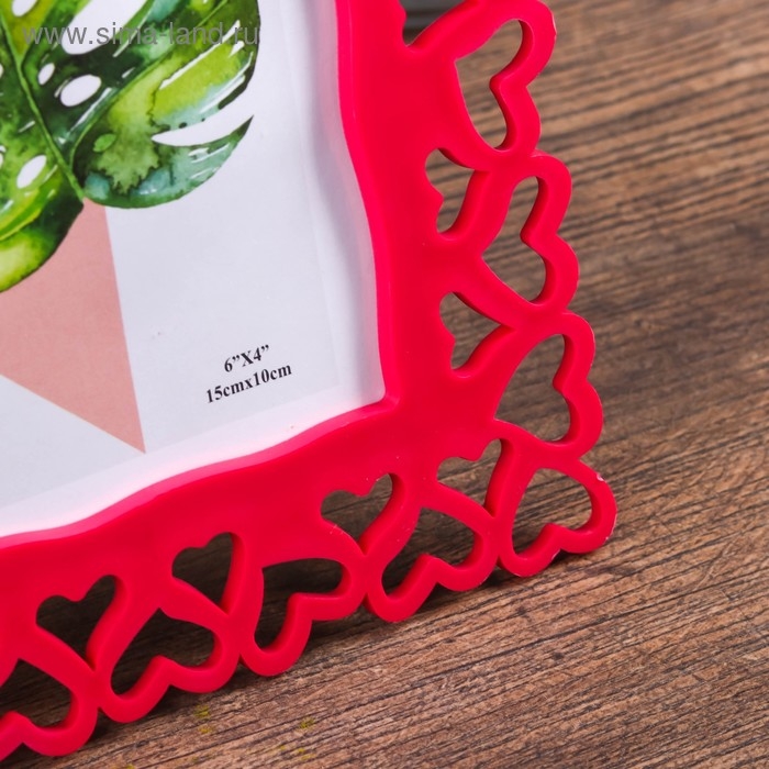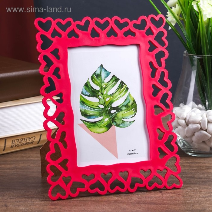 Фоторамка пластик 10х15 см "Сердца" малиновая 20,8х16 см