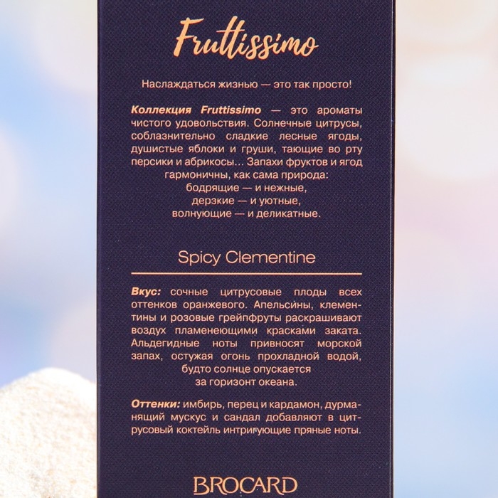 Верхние ноты: апельсин, клементин, цитрус, грейпфрут.