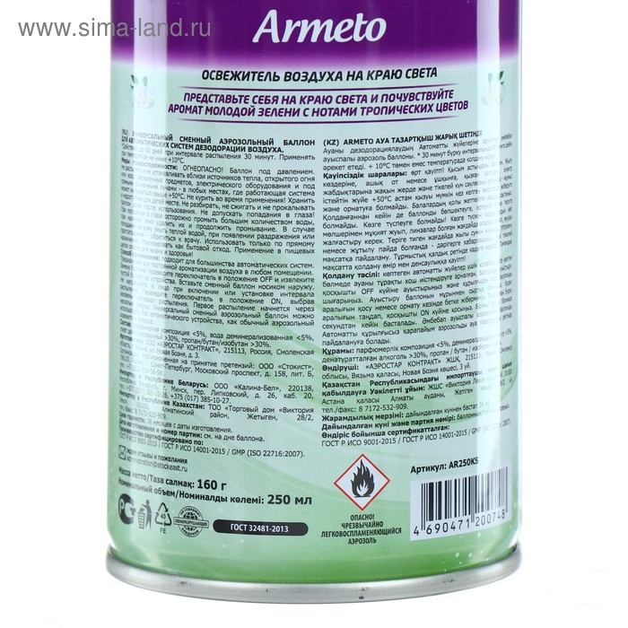 Освежитель воздуха Armeto "На краю света", со сменным баллоном, 250 мл