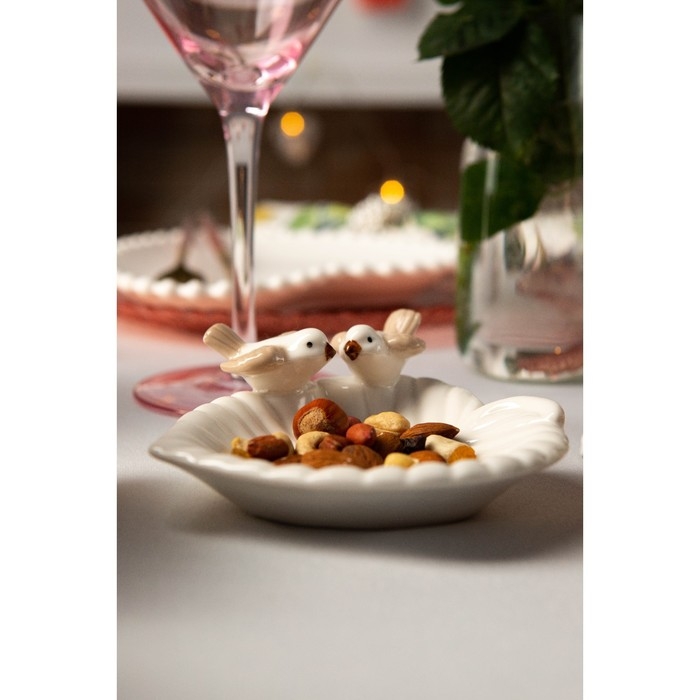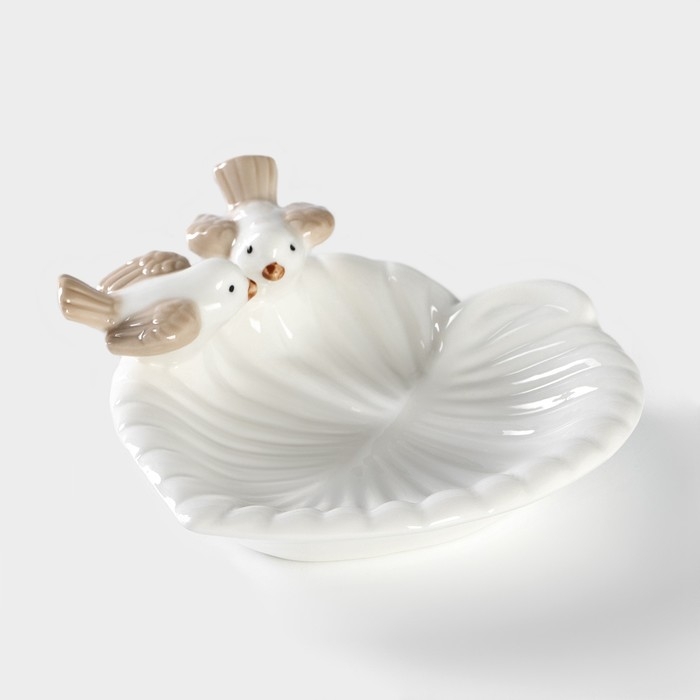 Блюдо керамическое сервировочное «Голубки на листочке», 13×13×2 см, цвет белый