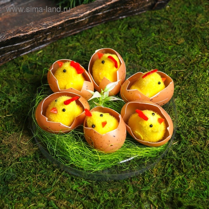 Сувенир пасхальный "Цыплята в яйце на травке" набор 6 шт 4,5х14х14 см