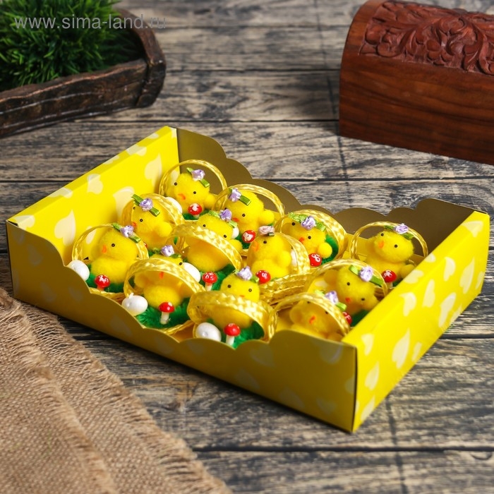 Сувенир пасхальный "Цыпа с яичком в корзинке с мухомором" набор 12 шт 5х5х5 см