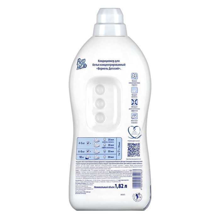 - Кондиционер Вернель Детский придает белью невероятную мягкость и свежесть.
