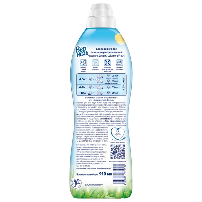 Концентрированный кондиционер для белья Вернель ""Свежесть Летнего Утра"" подарит белью не только невероятную мягкость, но и легкий пробуждающий аромат.