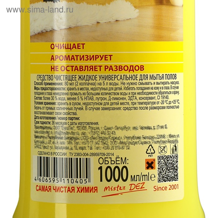 Средство для мытья полов Mister Dez "Лимонная свежесть", 1 л