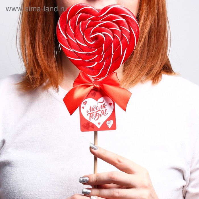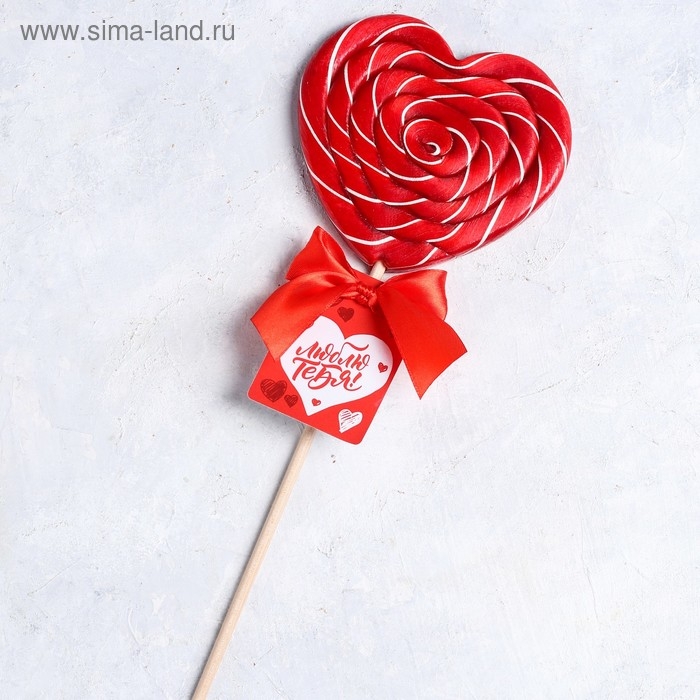 Леденец XXL на палочке «Люблю тебя»: сердце, клубника, 120 г.