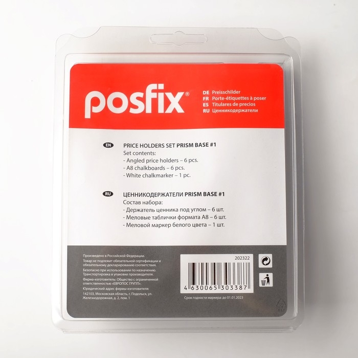 Набор 3 предмета: ценникодержатель, меловой ценник, маркер PRISM BASE 1, цвет чёрный