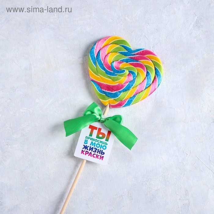 Леденец XXL на палочке «Ты приносишь в мою жизнь краски»: сердце, тутти-фрутти, 120 г.