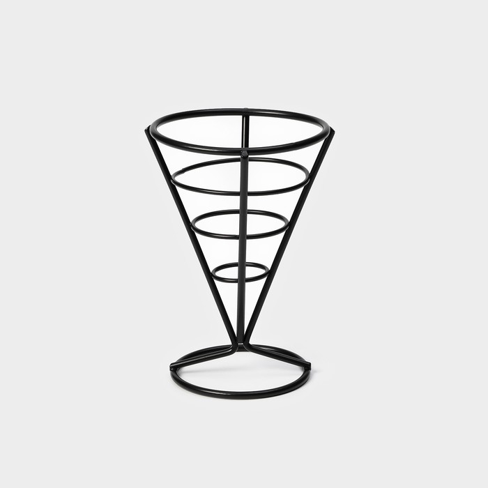 Представляем вам изящное решение для подачи картофеля фри — корзинку «Лукси» от компании Доляна. Благодаря своему конусообразному дизайну и чёрному цвету, корзинка не только удобна в использовании, но и стильно смотрится на любом столе.