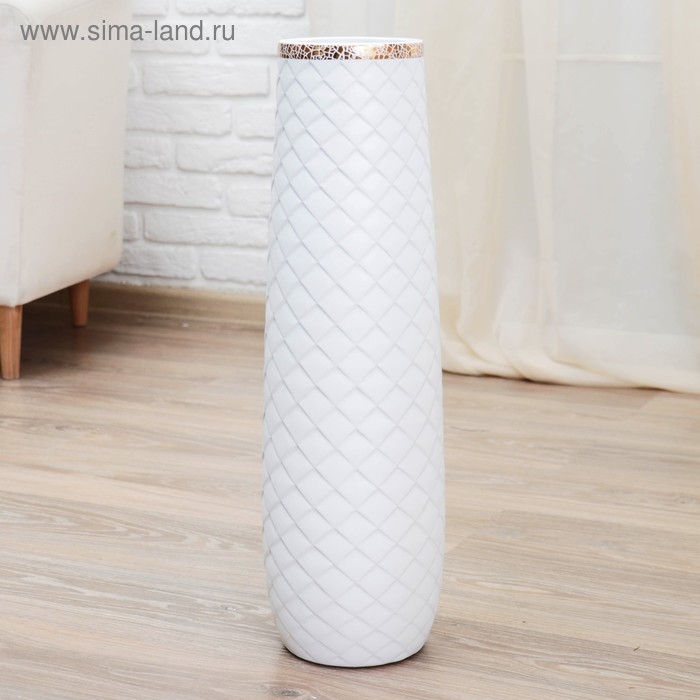 Ваза керамика напольная "Геометрия люкс" ромбики, d-14 h-60 см, белый
