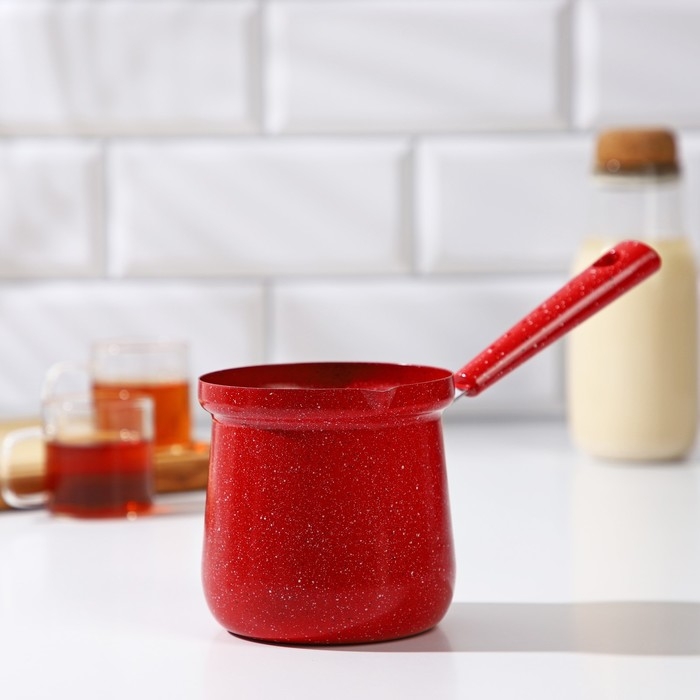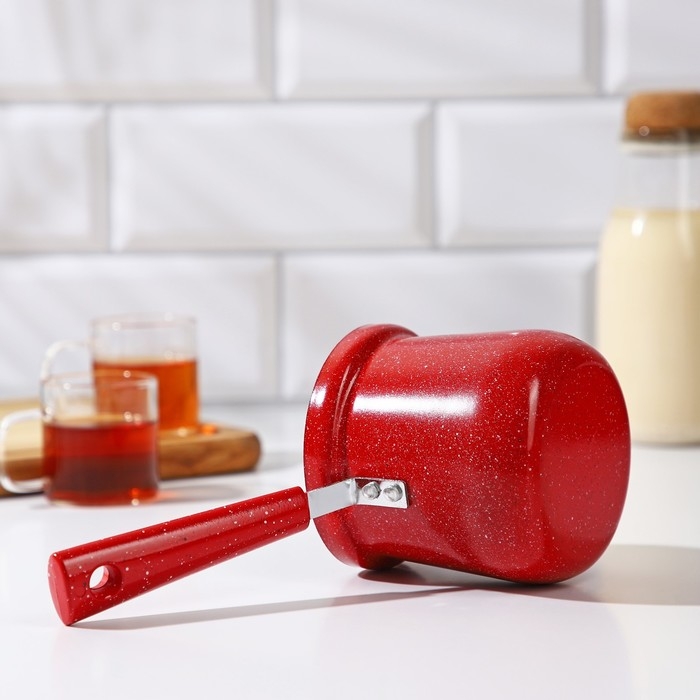 Турка Доляна «Мрамор рэд», 500 мл, d=9 см, 19,5×9×14 см, пластиковая ручка, антипригарное покрытие, индукция, цвет красный