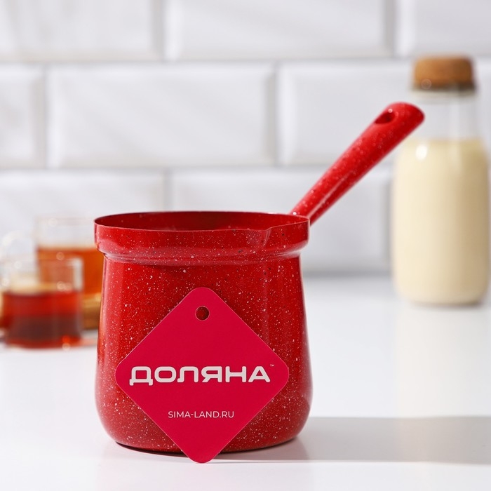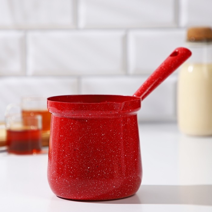 Турка Доляна «Мрамор рэд», 400 мл, d=8 см, пластиковая ручка, антипригарное покрытие, индукция, цвет красный