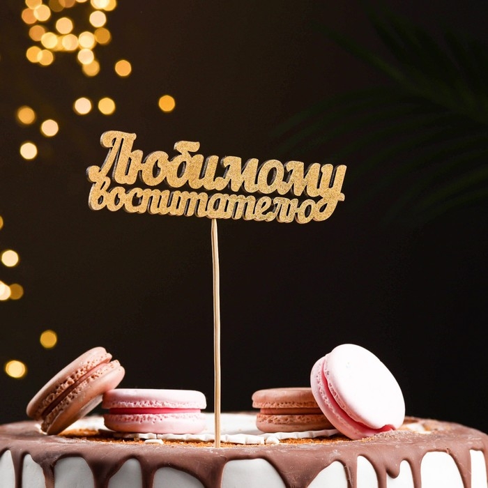 Топпер Дарим Красиво "Любимому воспитателю" на подвесе, золотой