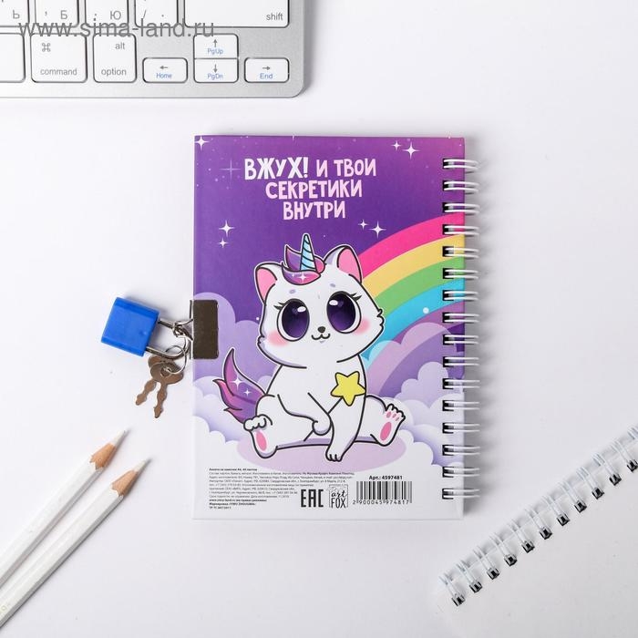 Анкета на замочке, в твердой обложке А6, 40 листов «Замурчательная»