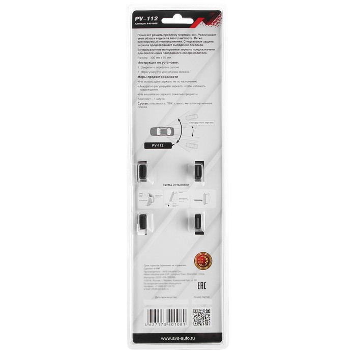 Зеркало внутрисалонное AVS PV-112, панорамное, 300 х 65 мм