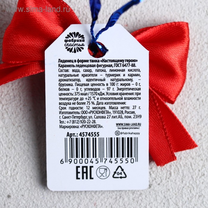 Леденец на палочке «Настоящему герою», танк, 27 г.