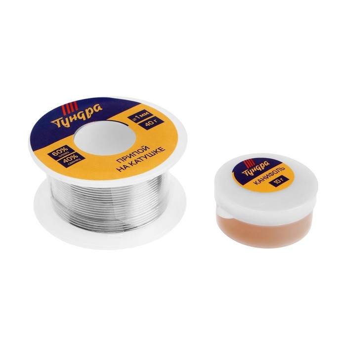 Набор для пайки ТУНДРА, ПОС 60, 1 мм, 40 г и канифоль 10 г