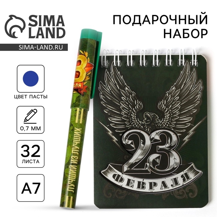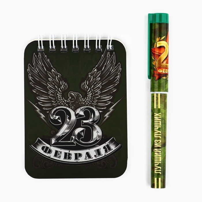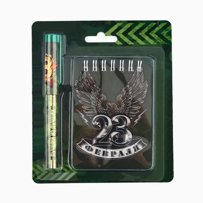 Подарочный набор «23 Февраля»: блокнот и ручка пластик