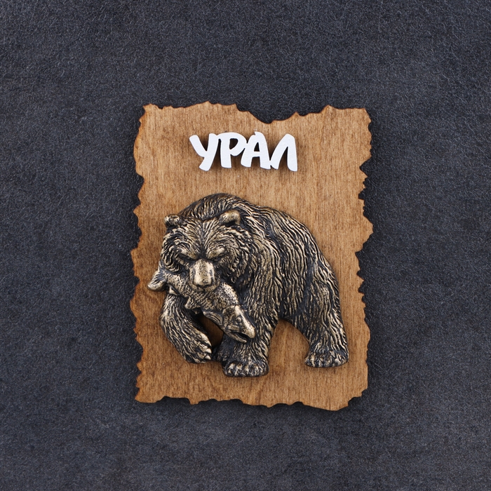 Магнит "Медведь с рыбой новый", дерево, гипс, 7х9 см