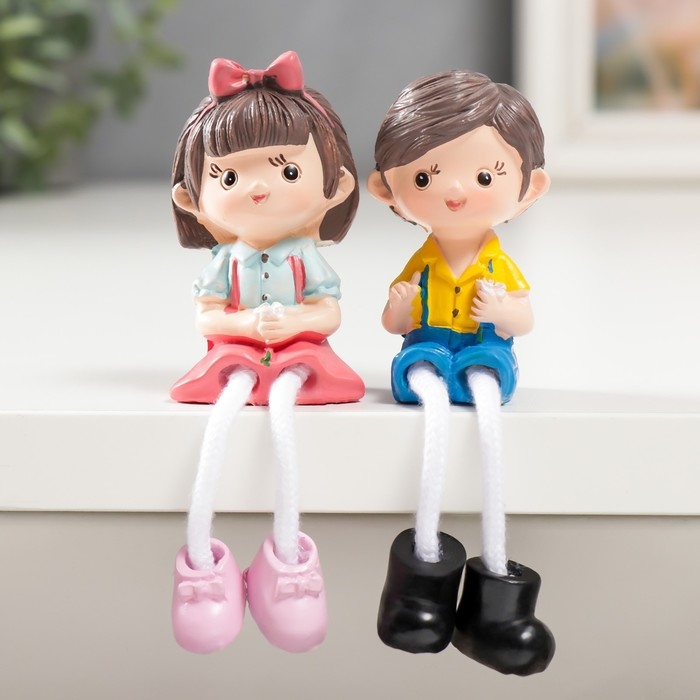Сувенир полистоун "Малыш/Малышка с цветочком" длинные ножки МИКС 10,5х3х3,5 см