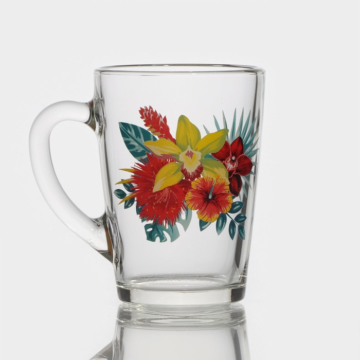 Кружка стеклянная «Тропические цветы», 300 мл, рисунок МИКС