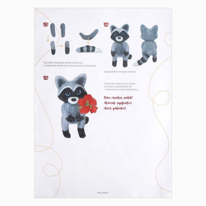 Набор для творчества. Игрушка из шерсти «Енот с цветами»