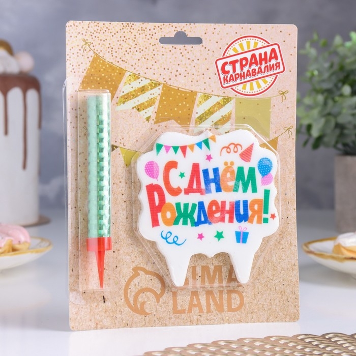 Подарочный набор "С Днем Рождения" из 2ух предметов: свеча-фонтан и свеча для торта