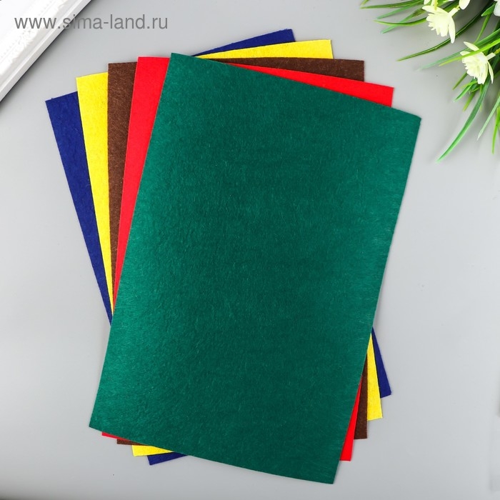 Фетр "BLITZ" 1 мм, жёсткий 20х30 см ± 2 см (набор 5 шт) ассорти №1