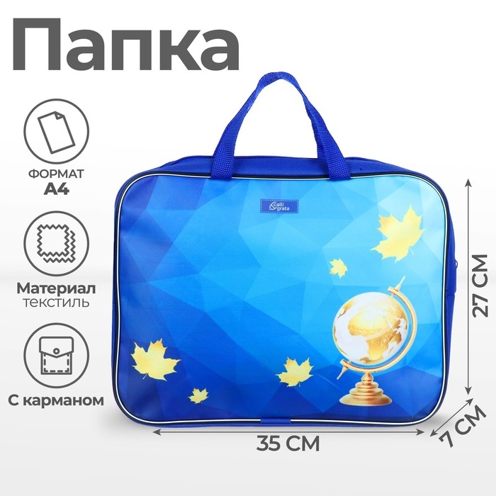 Папка с ручками текстильная А4, 350 х 270 х 70 мм, Calligrata "Глобус"