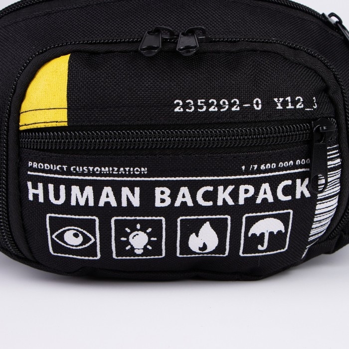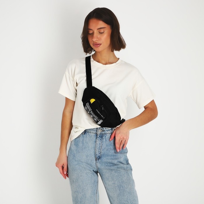 Сумка поясная «Билет», 28х7х14 см, отдел на молнии, наружный карман, цвет чёрный