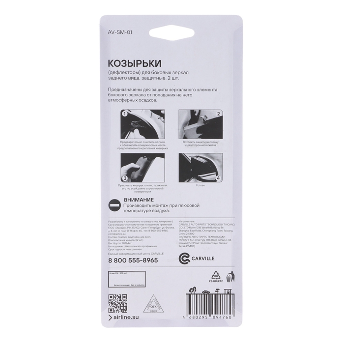Дефлекторы Airline для боковых зеркал заднего вида, защитные, набор 2 шт, AV-SM-01