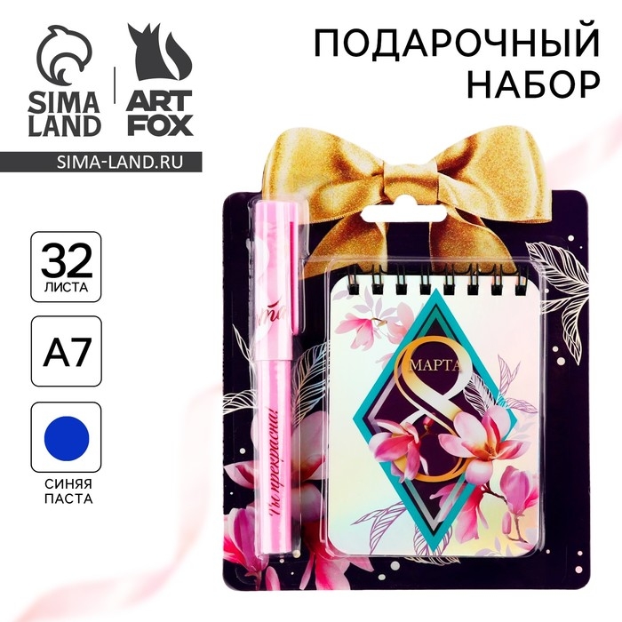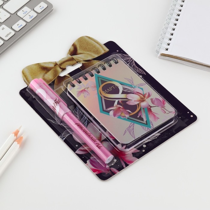 Подарочный набор «8 Марта»: блокнот и ручка пластик