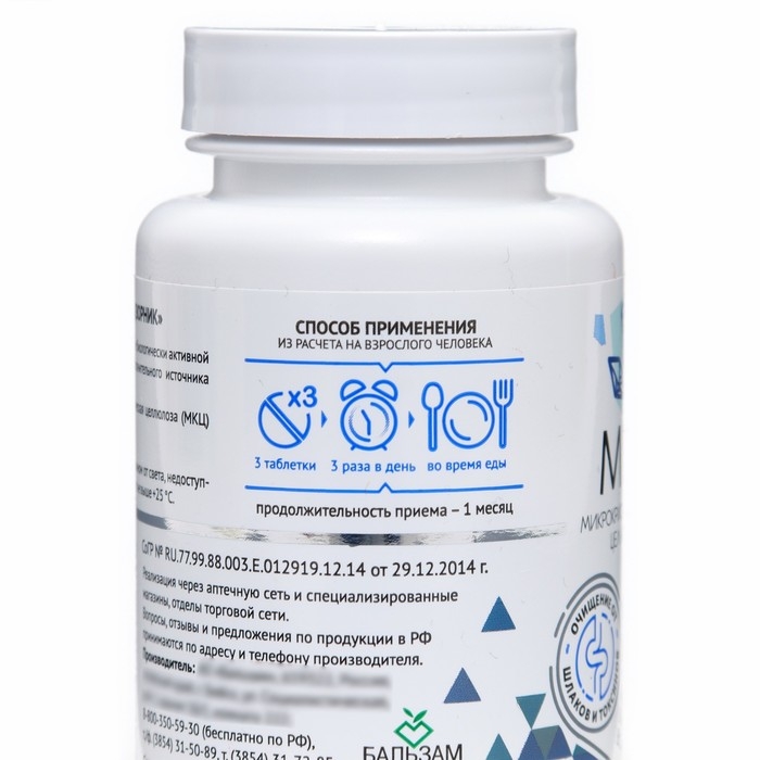 Способ применения: Взрослым по 3 таблетки 3 раза в день во время еды.. Продолжительность приема не ограничена и зависит от индивидуальной потребности организма в пищевых волокнах.